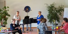 Ein Gebet von Ingeborg Gruber, kleine Rückblicke und kurze Vorträge von Veronika Brier, Rita Esslinger, Rainer Petrak und Brigitte Mack, ein musikalischer Beitrag an unserem Flügel von Ilona Hesse aus Maintal und Lieder, gekonnt begleitet von Rainer Petrak, strukturierten den Abend. Mit einem reichhaltigen Büffet war auch ans leibliche Wohl gedacht.